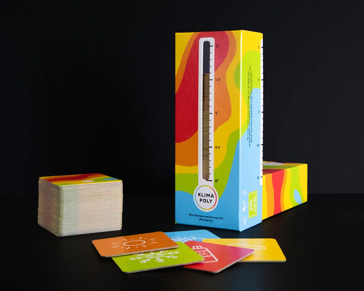 Wirst du reich und scherst dich nicht um „das bisschen Wetter“? Rettet ihr das Klima, gewinnt gemeinsam und beendet das Spiel bevor jemand das gesamte Kapital an sich reißt? Oder kümmern sich die anderen um das Klima und du investierst in deine Häuser und Hotels? Bei Klimapoly ist alles möglich!