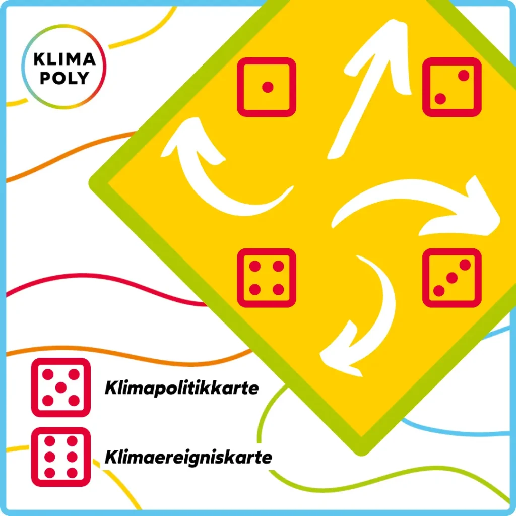 Bei Klimapoly spielt ihr gleichzeitig kooperativ und gegeneinander. Einerseits wollen alle reich werden und alleine gewinnen. Andererseits schafft ihr es nur gemeinsam, den Klimawandel zu bremsen und die schlimmsten Katastrophen zu verhindern. Was ist deine Strategie?